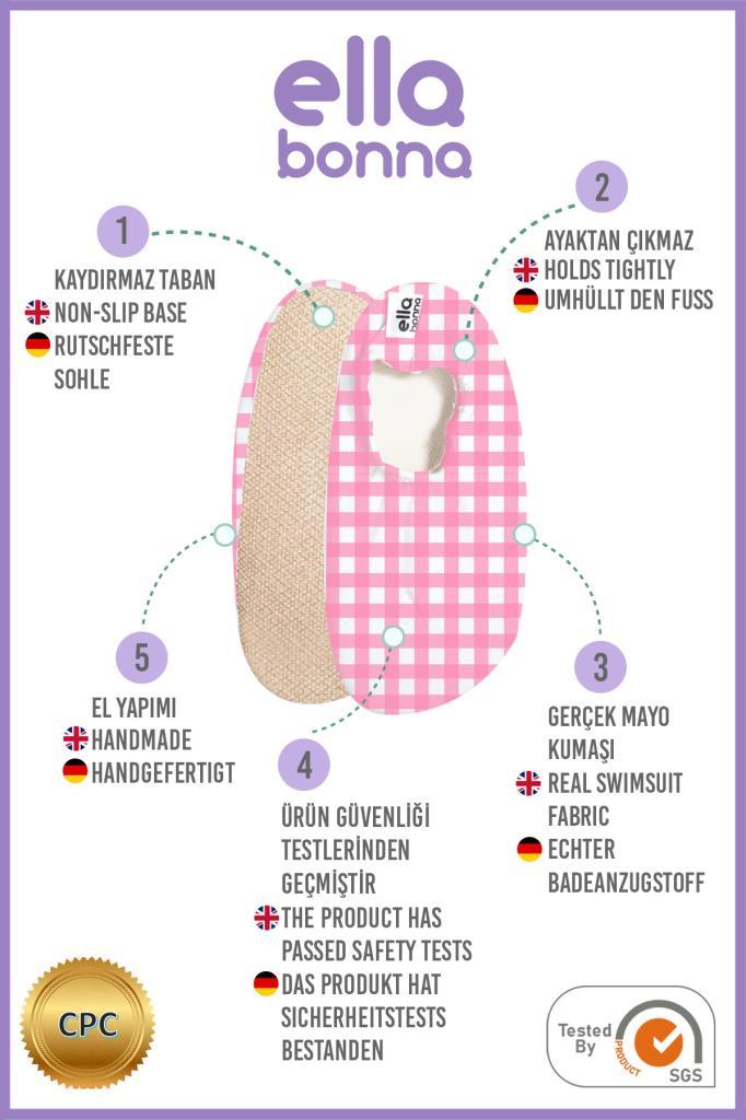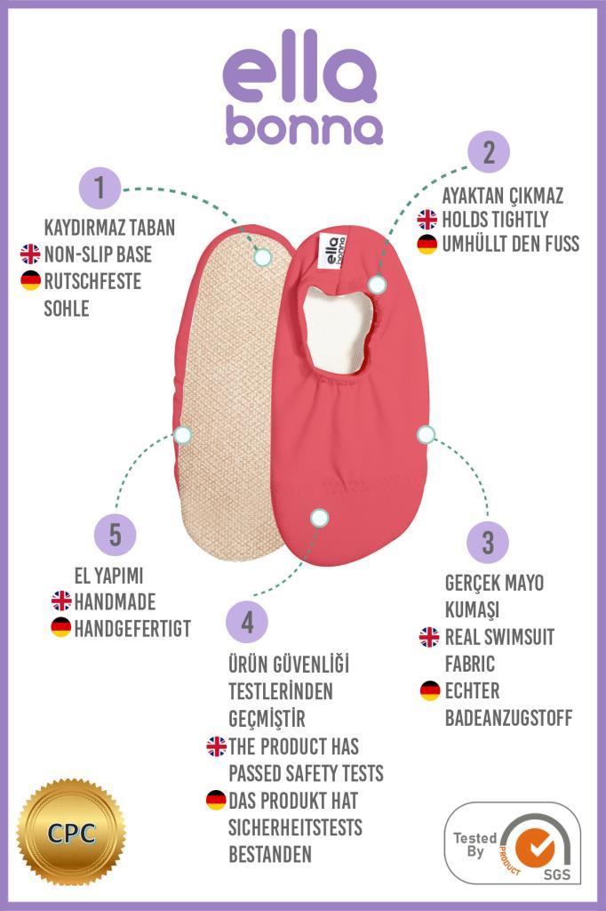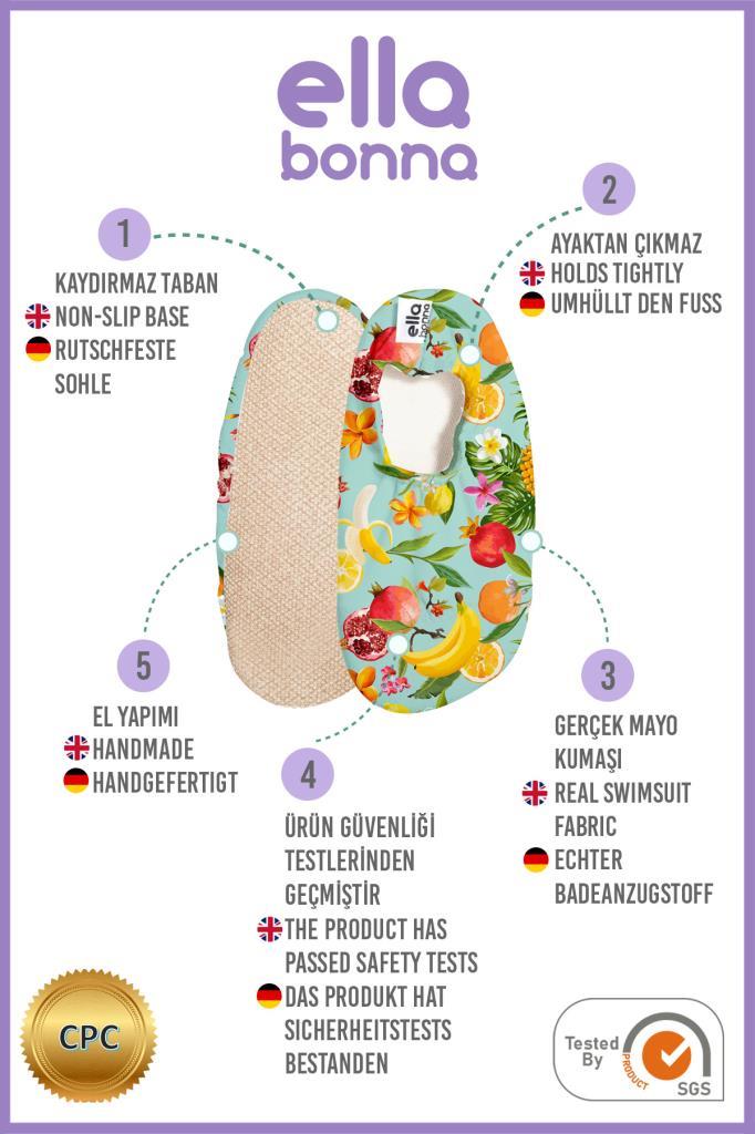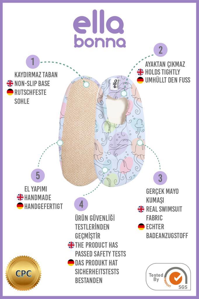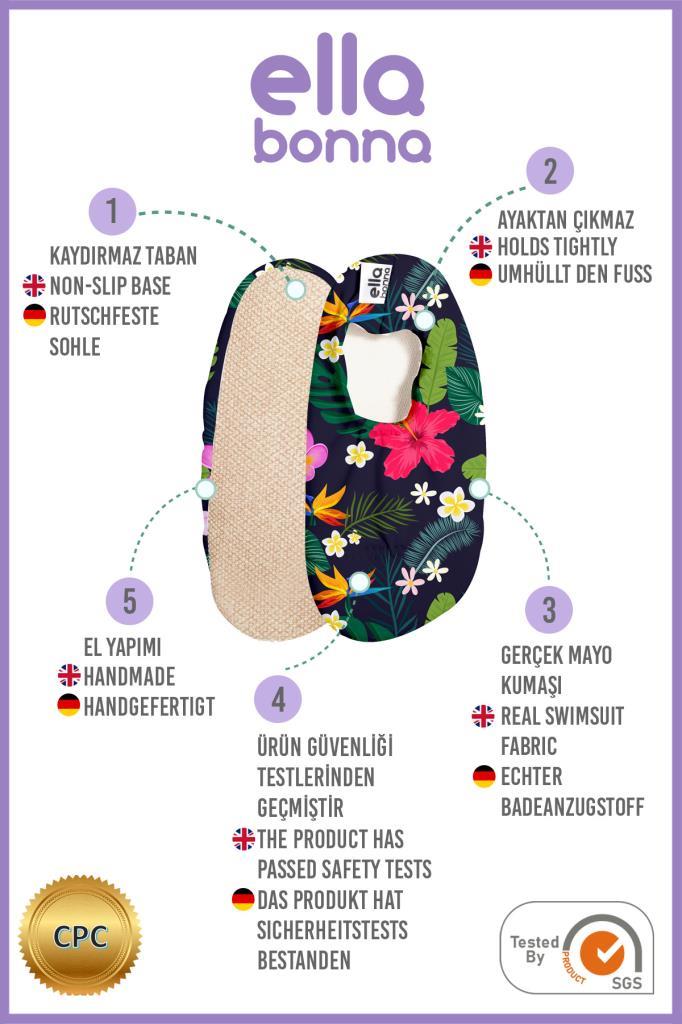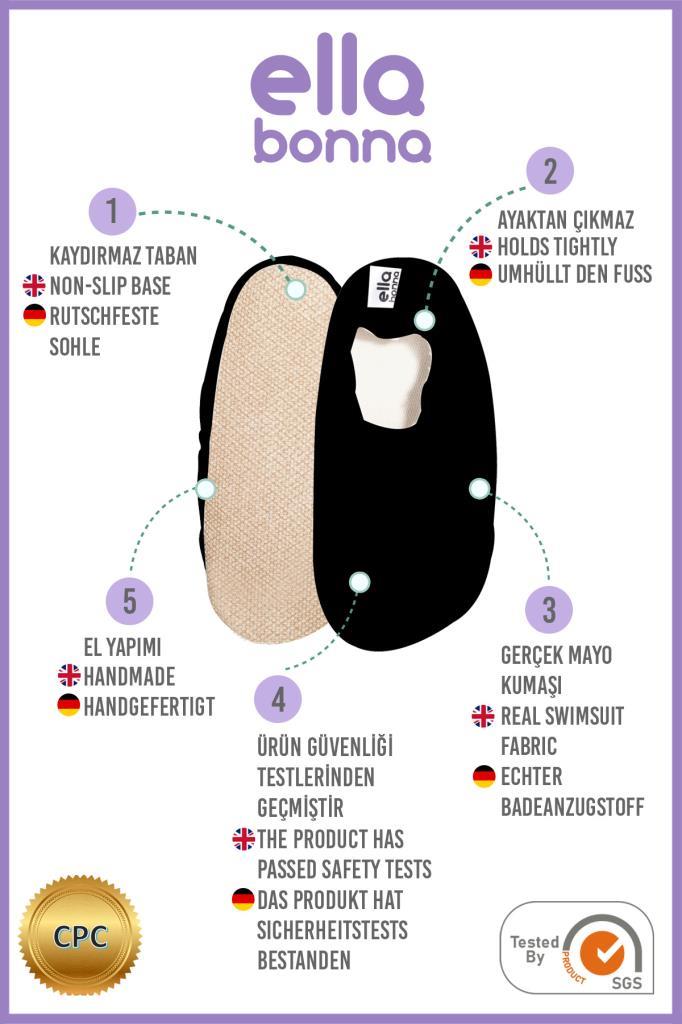 Deniz ve havuz kenarında kaymaz yapısı sayesinde güvenliğinizi sağlamanız adına yardımcı olurken, sporda veya banyoda da kayma, düşme tehlikesine karşın rahatlıkla kullanabilen konforlu bir Ella Bonna ürünüdür.