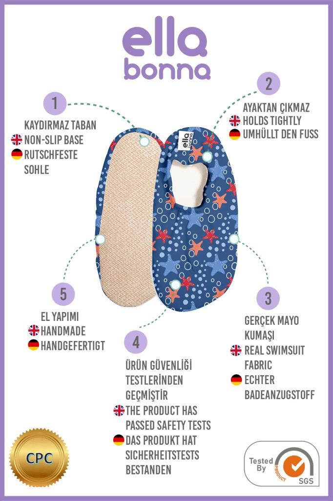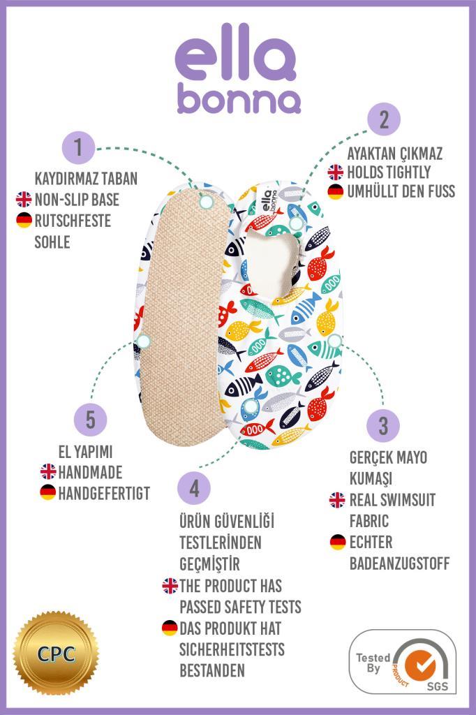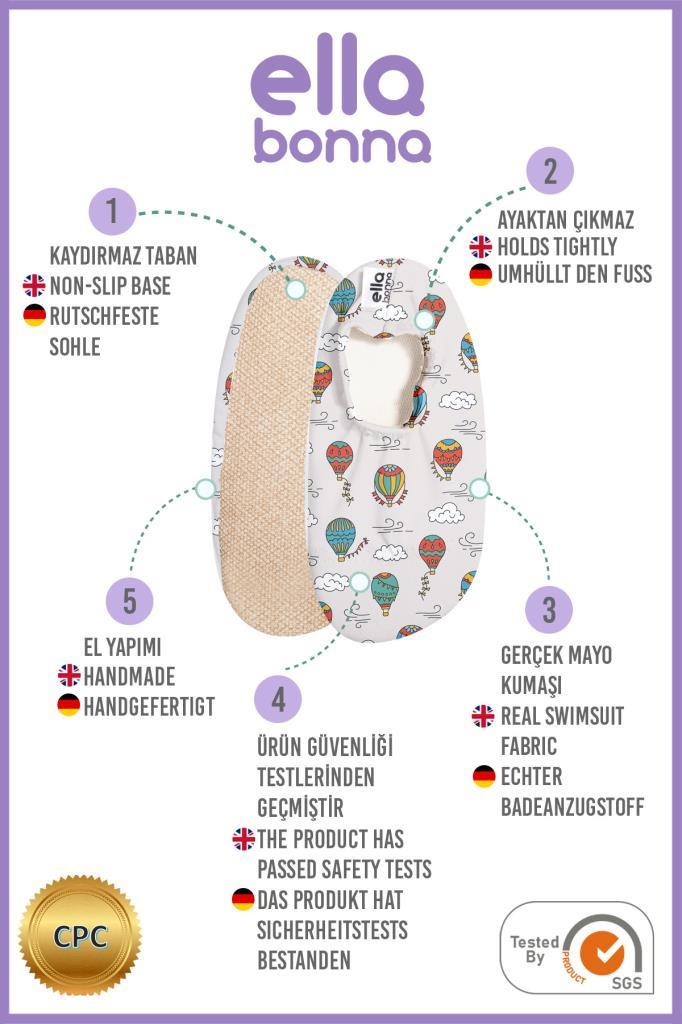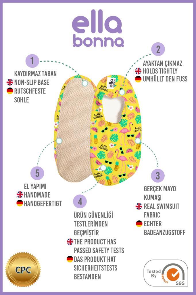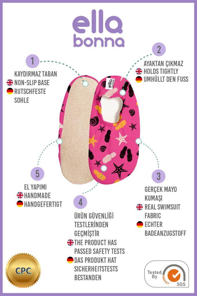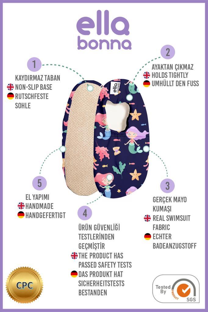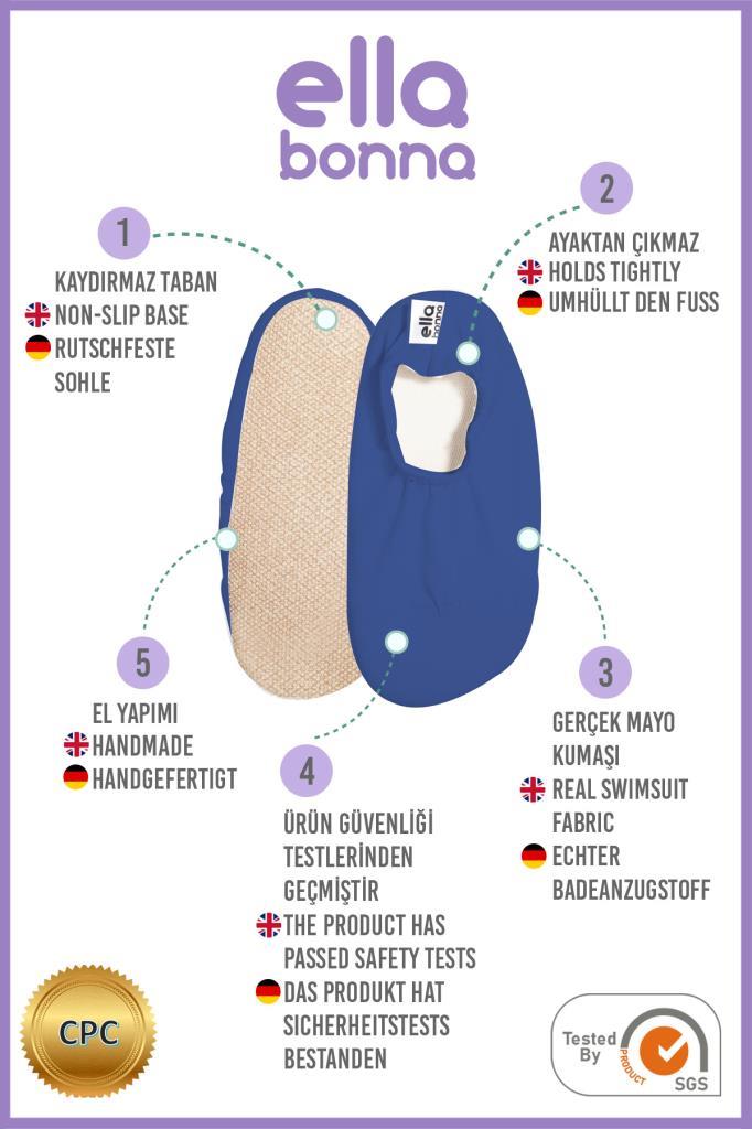 Deniz ve havuz kenarında kaymaz yapısı sayesinde güvenliğinizi sağlamanız adına yardımcı olurken, sporda veya banyoda da kayma, düşme tehlikesine karşın rahatlıkla kullanabilen konforlu bir Ella Bonna ürünüdür.