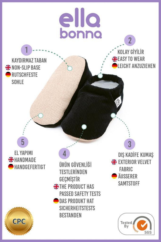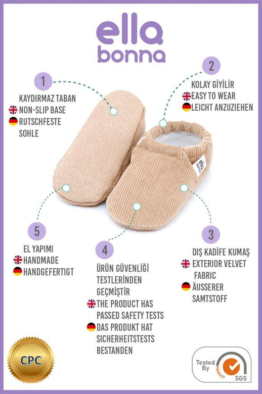 Kadife Bebek Patiği Fitilli, Kaydırmaz Taban, Kreş Ayakkabısı Patik